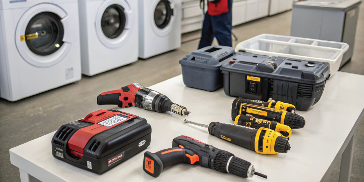 Recuperação completa de ferramentas elétricas profissionais, incluindo troca de rolamentos, escovas, interruptores, carcaças e componentes mecânicos, devolvendo o equipamento com desempenho equivalente ao novo.